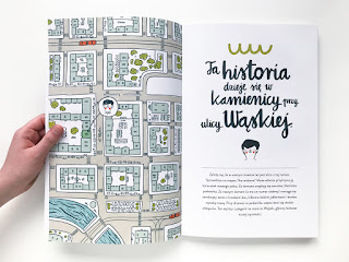 A teraz czas na autorkę ilustracji. Już po okładce widać, że wydawnictwo to zilustrowała Ola Woldańska-Płocińska. Ja w szczególności uwielbiam nosy rysowane przez tą panią. Moje ulubione to te piegowate i szpiczaste. Myśląc o tej pani, do głowy przychodzi mi takie działanie: dziecięckość (wyraz ten zapożyczyłam od pana Wojtka Waglewskiego) + komputer + ciężka praca + serce = Ola Płocińska!